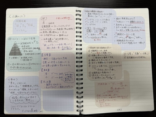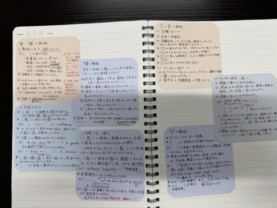 Kさん)はい、各学部の戦略を1枚にまとめたノートを作っていました。慶應商学部、慶應法学部それぞれ、大問ごとのアプローチを色分けして書き出して、試験前日に確認できるようにしました。