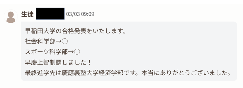 Mくん)元々は慶應に行きたくて勉強していましたが、SSの学習アドバイスや出願のアドバイスもあって早稲田と上智には合格できました。