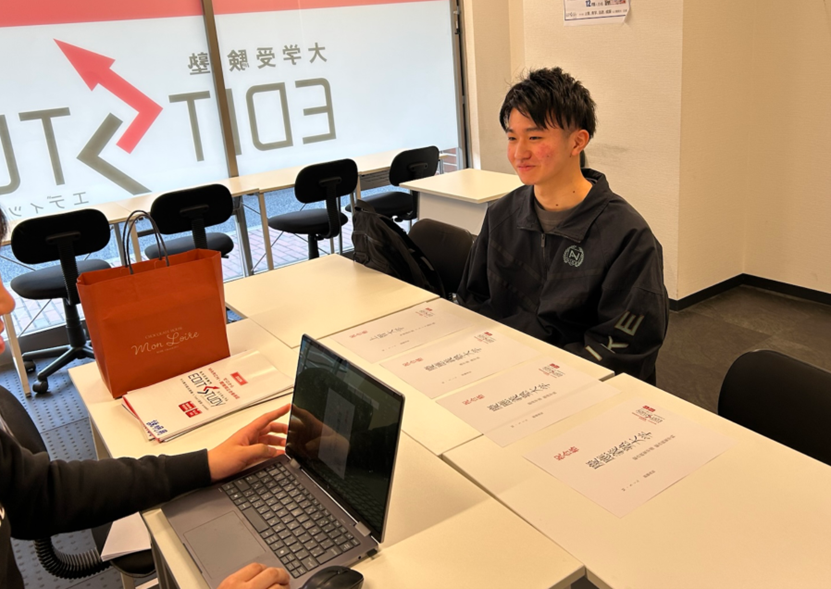 Mくん)そうです。先輩がここ通っていたというのを教えてくれて、「大手予備校よりも質問できる」っていうのを聞いて来ました。その先輩が慶應に受かっていたということもあって、面倒見が良さそうだと感じて、入塾しました。