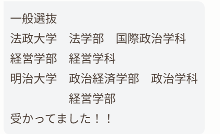 明治大学 政治経済学部 政治学科進学!Y・Yくん(國學院高校)