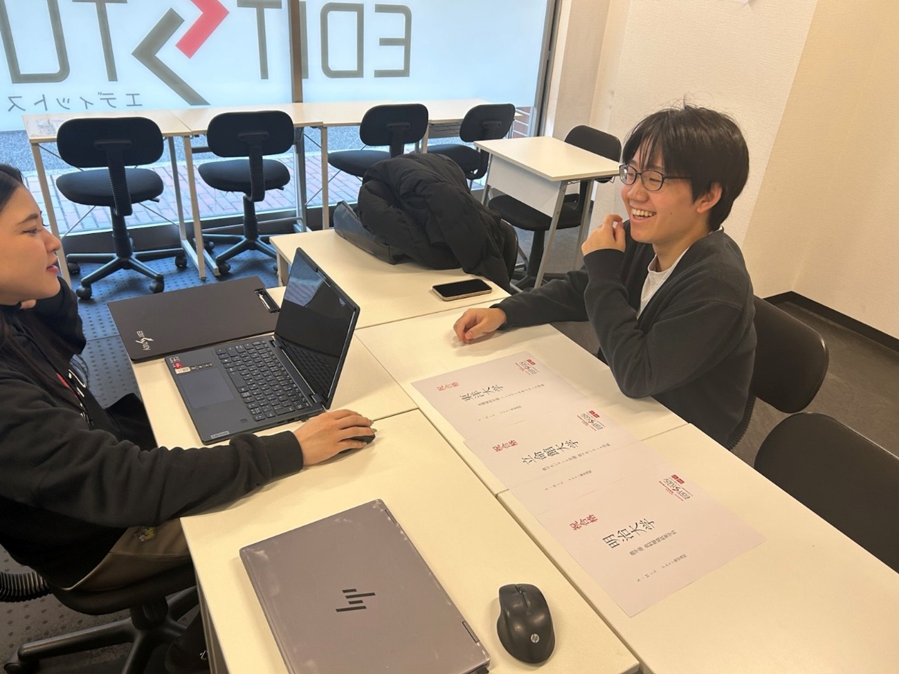 Hくん)一人ひとりをサポートしてくれそうっていうのもあったんですが、一番の決め手は「ゼロからMARCH合格」とEDIT STUDYが言ってくれていたからです(笑)そうやって言ってくれることで、「信じてついていこう」と思えたし、言い切ってくれてるのがすごい安心につながりました。合格した今、信じてついていって良かったです。