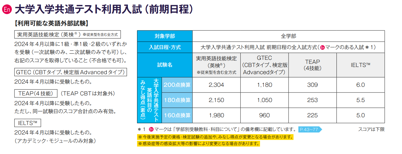 1. 英語資格・検定試験の利用可