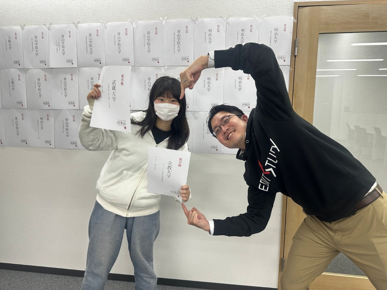 H・Mさん) 一年生のころから志望校への憧れが強かったからです。先輩たちが通っている様子をインスタとかで見て、「自分もやっぱり行きたいな」という気持ちがありました。今までは集団だったけど、個人個人で見てくれていたので、自分のわからないところとか悩みとか、そういうのもしれたりアドバイスとかしてくれたりして、それを改善しようとしてくれたのがよかったです。