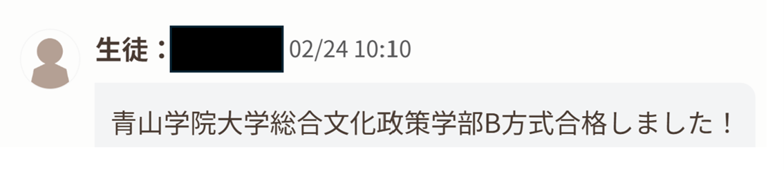 その前にも、コミュニティ人間科学部や立教の合格はもらっていたのですが、青学の総合文化政策は無理かもって思っていたので、一番嬉しかったです。