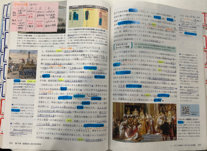 Aさん)正直『世界史の教科書』を受験勉強で使うイメージはなかったんですが、何回も読むことで、世界史に親しみを持てるようになりました。直前期は教科書を1100ページずつやっていました。