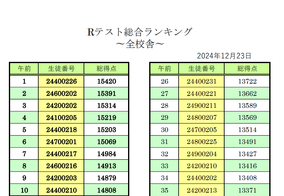 復習テストの結果